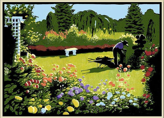 Laura is a serene soul who is active in the Arts and Crafts community and has won many awards exhibiting her work in New York, where she makes her home. Her block prints are an inspiration and embody the themes of the Arts and Crafts movement, particularly nature and the home.