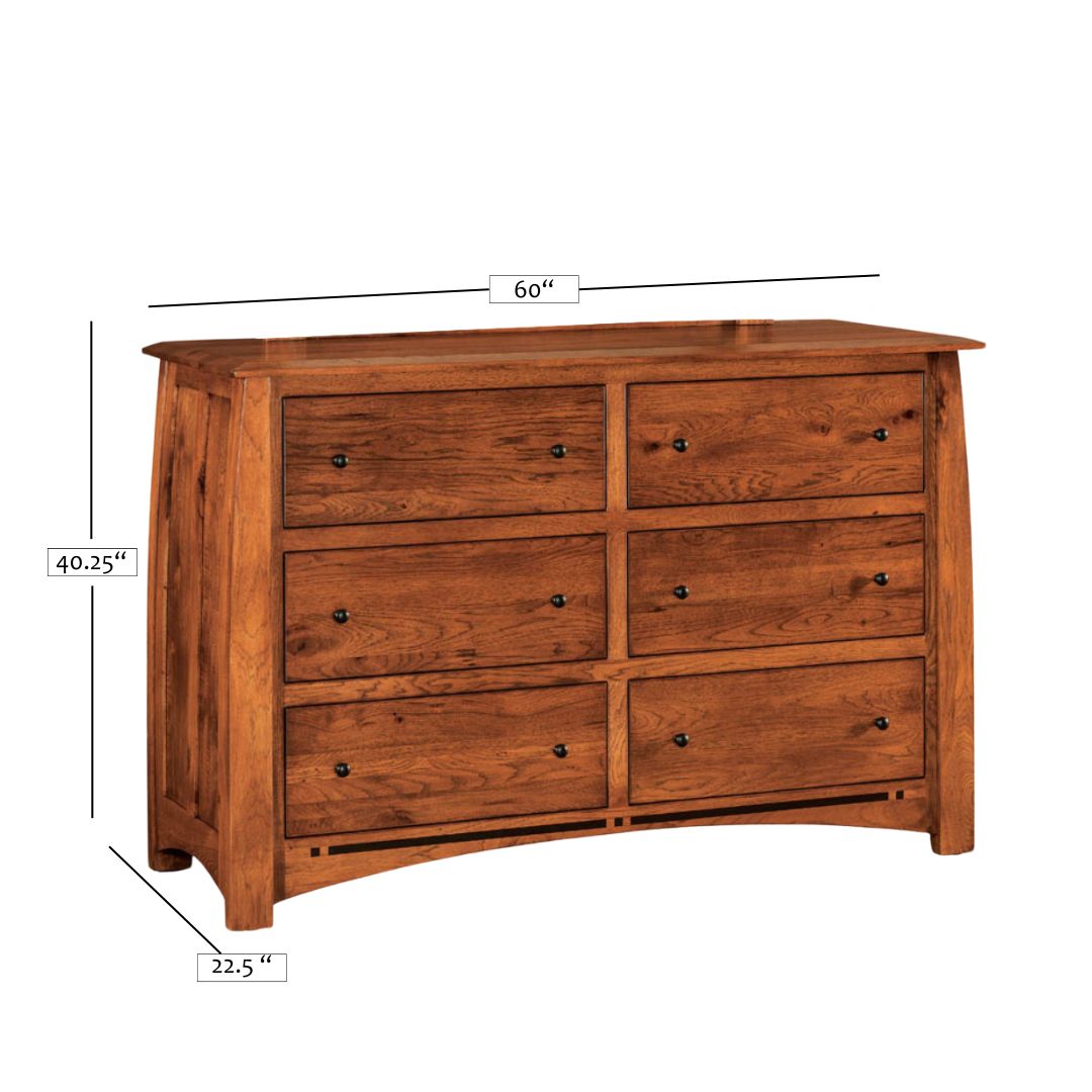 Expertly crafted from durable solid hardwood, the Artisan Inlay 6-Drawer Dresser is a practical and elegant addition to any bedroom. With a compact size and ample storage space, it balances form and function seamlessly.