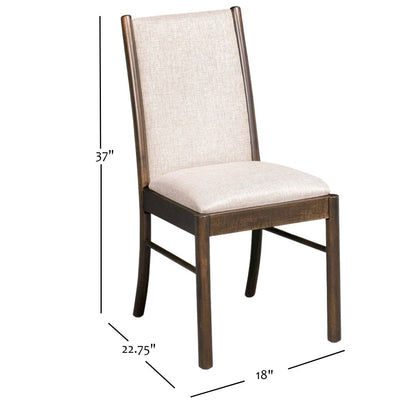 Introduce modern design and traditional Amish construction with the Adams Side Chair. Expertly crafted for a sleek, contemporary look, this chair combines style with quality for your dining room needs. Embrace modernity with classic durability for a lasting addition to your home.