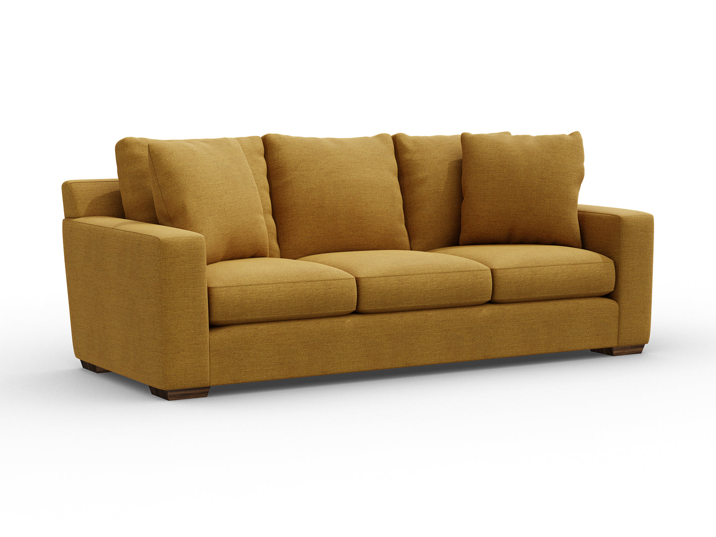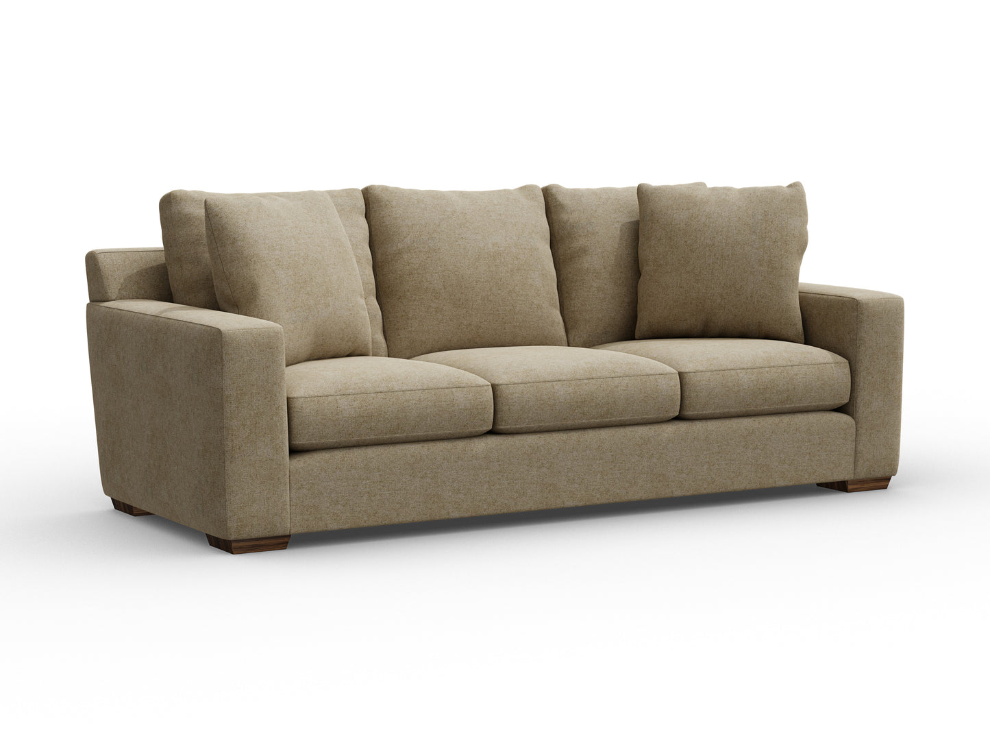 91 inches wide. Overall height is 37 inches, and overall depth is 41 inches. Seat height is 18 inches, seat depth is a roomy 24 inches and arm height is 24 inches. Dimensions are approximate and are subject to the slight variations inherent in hand built products.
