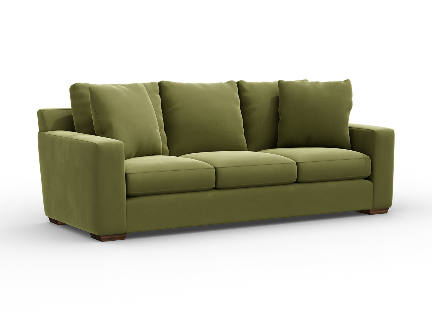 Our sofa, chair and bed frames are solid wood with 1-1/8" lumber (most furniture frames are 3/4"), and feature a no-sag spring system with 8 gauge S-springs, lateral stabilizers, extra corner springs and coated spring hangers connecting springs to frame to eliminate squeaks. All joints are corner blocked for increased durability as well. Dacron-wrapped 2.0-2.75 high density foam core cushions provide lasting comfort and support. With proper care and re-upholstery over time, this can easily be your last sofa purchase.