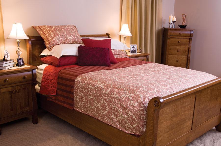 Take away the modern post-catalyzed lacquer and this exceptional collection would be nearly impossible to distinguish from the furniture that first went west with Americas ealy Pioneers. Based on the American Emprie style popularized in the early 1800s, this collection features wood knobs and broad lines, graced by an occasional curve. Shown and beloved in the classic combination of quarter sawn oak and Michael's finish.