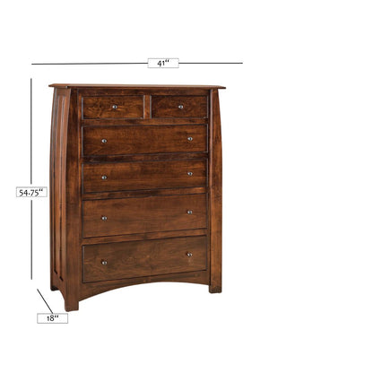 This Express Ship Artisan Inlay 6-Drawer Chest is expertly crafted from solid hardwood by Amish artisans. Made from solid North American hardwood, this chest offers exceptional durability and strength. Its timeless design and superior craftsmanship make it a valuable addition to any bedroom.