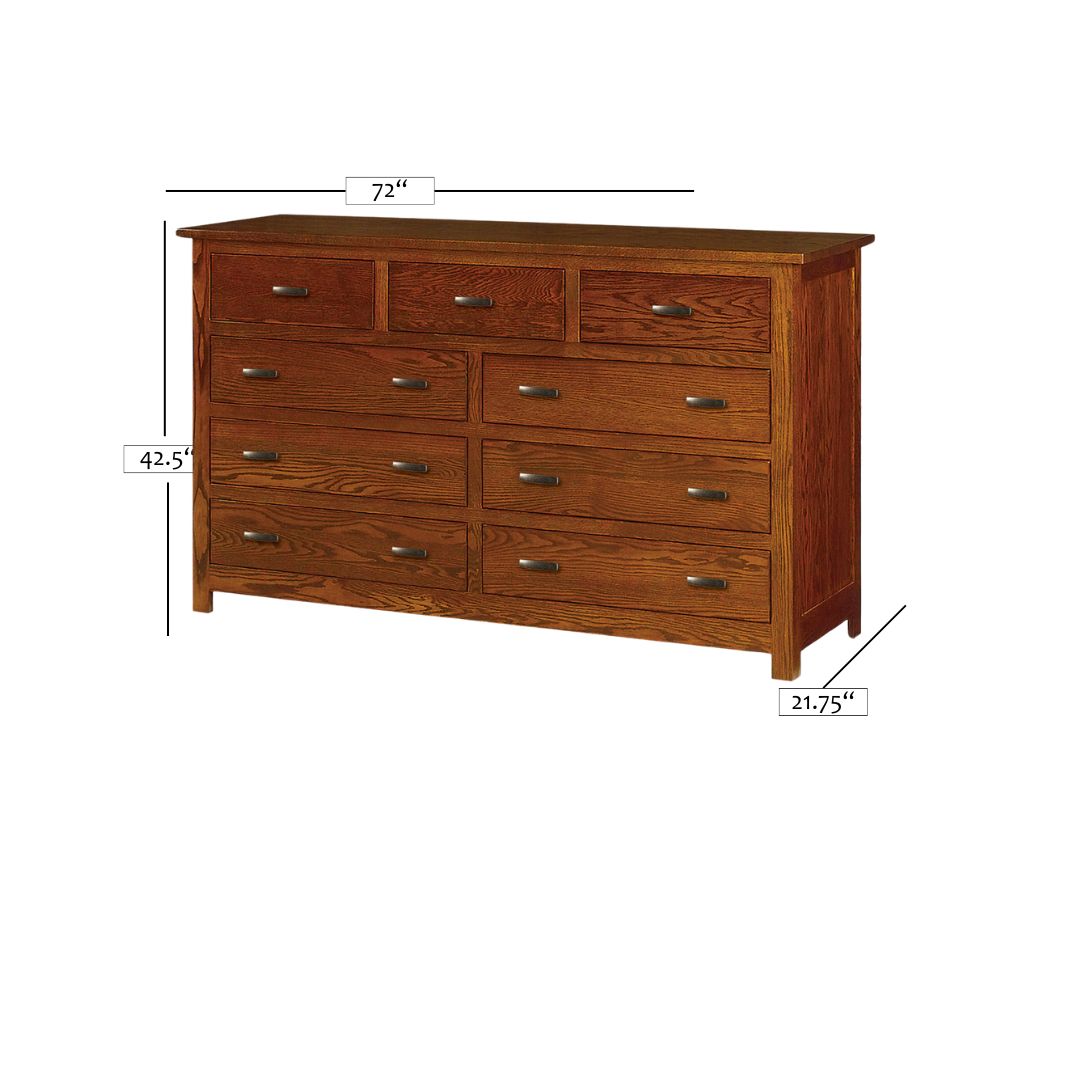 Featuring a mission style design, the Mission 9-Drawer Dresser offers generous storage and is Amish-made with solid hardwood for durability.