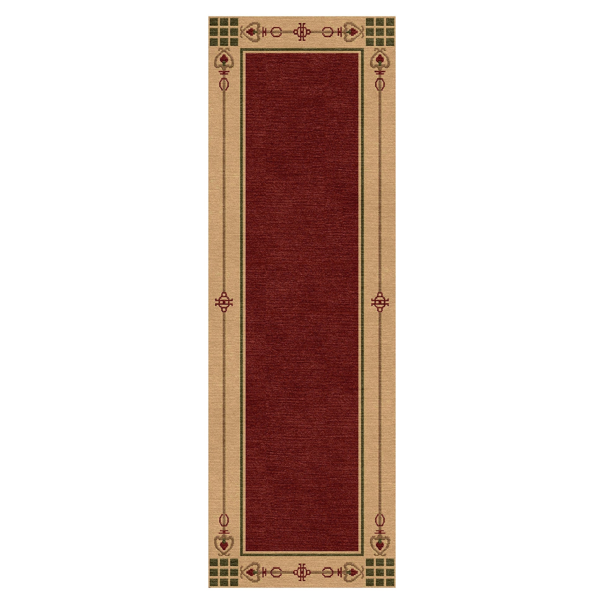 Modeled after furniture inlays by quintessential Arts and Crafts designer Harvey Ellis, the Highland Park rug is named for an upstate New York tableau. The elegantly simple motif combined with the geometric border pattern makes for a perfectly balanced design.