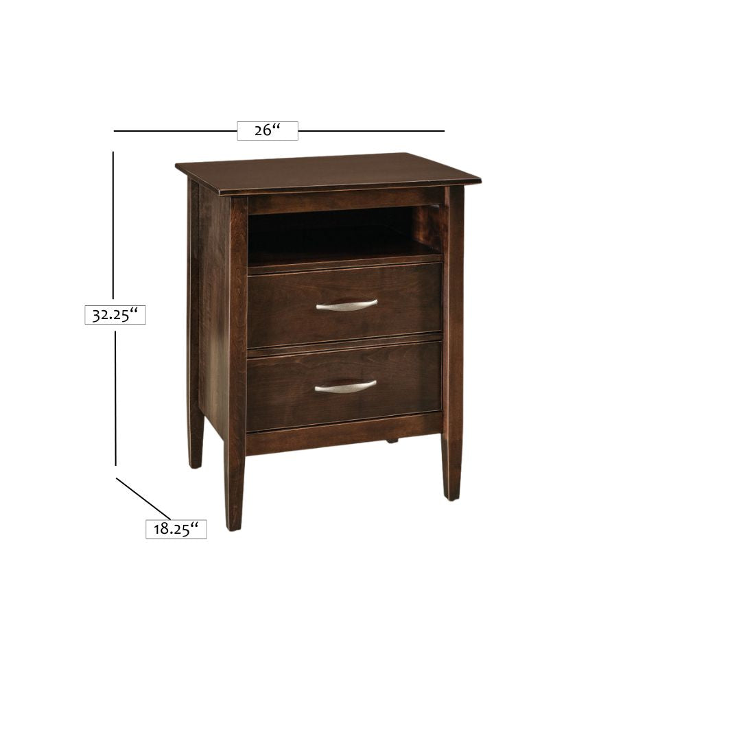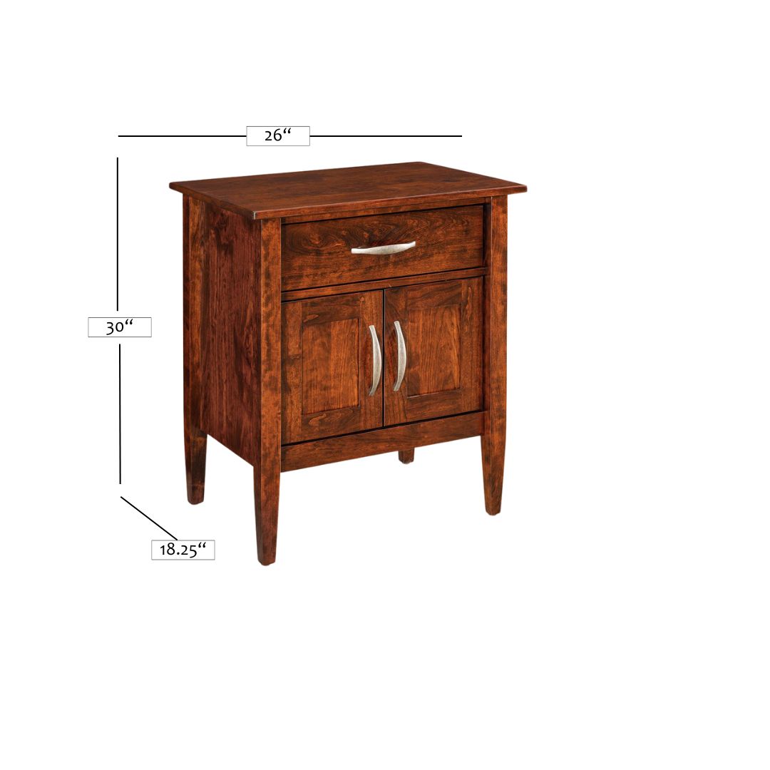 This American made nightstand is crafted from high-quality solid hardwood, ensuring durability and longevity. Its sleek and modern style adds a touch of sophistication to any bedroom. Made by Amish craftsmen with years of experience, this nightstand is the perfect addition to your bedroom.