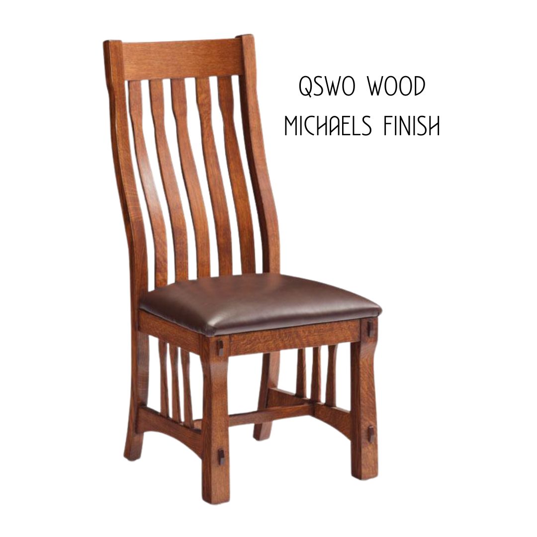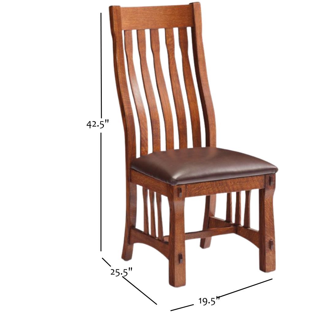 The MaRyan Side Chair features a classic craftsman style with solid hardwood construction, showcasing through tenons and other craftsman details. Handcrafted by Amish artisans, this chair combines timeless design with exceptional quality.