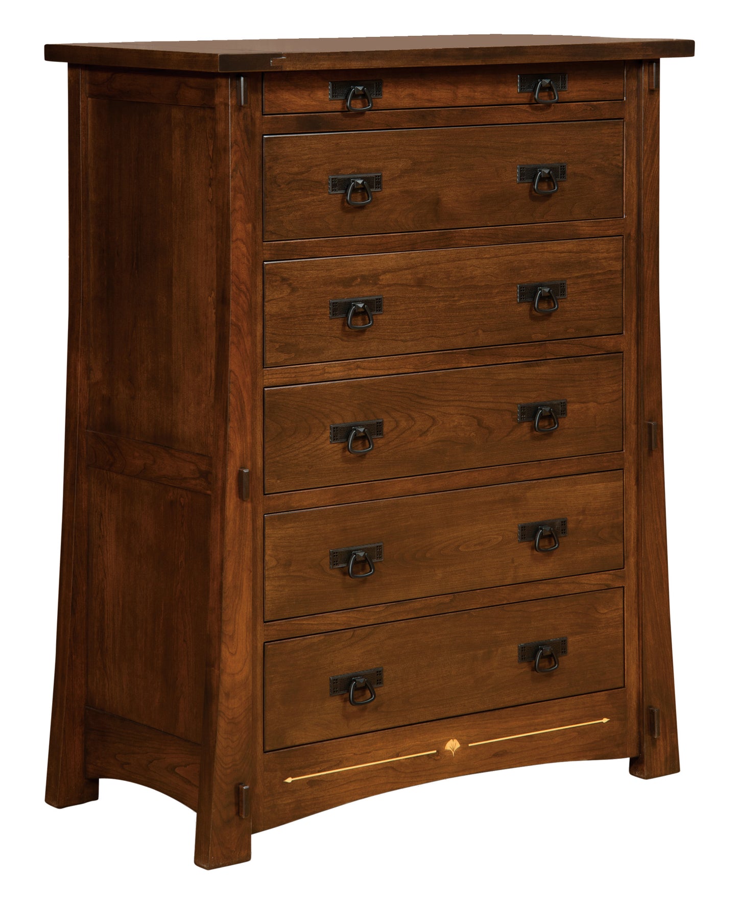 Crafted from solid hardwood in the USA, the Gingko Inlay 6-Drawer Chest features stunning inlay detail for an elegant and sturdy storage solution.