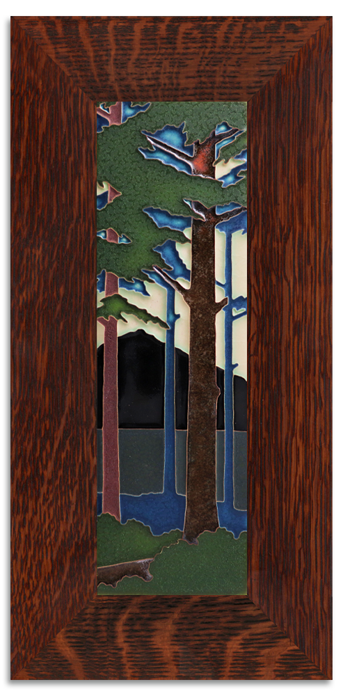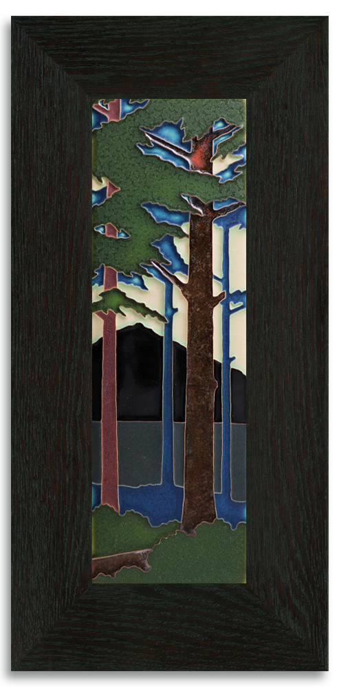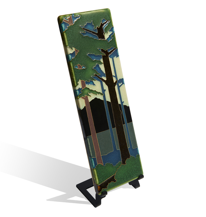 The Pine Landscape Vertical Tile is adapted from Grueby Faience designer Addison LeBoutillier's tile Pines. This polychrome tile is a classic design that is recognized as a part of Motawi's signature series and features a summer finish.